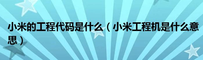 大家好,小小来为大家解答以下问题,小米的工程代码是什么,小米工程机是什么意思很多朋友还不知道,现在让我们一起来看看吧!