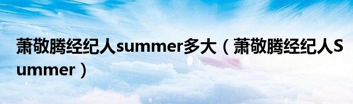 关于萧敬腾经纪人summer多大,萧敬腾经纪人Summer这个很多人还不知道,今天菲菲来为大家解答以上的问题,现在让我们一起来看看吧!