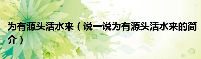 夏弥来为大家解答以下的问题,为有源头活水来,说一说为有源头活水来的简介,现在让我们一起来看看吧!