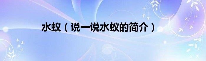 夏弥来为大家解答以下的问题,水蚁,说一说水蚁的简介,现在让我们一起来看看吧!