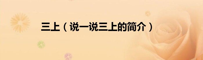 三上(说一说三上的简介)