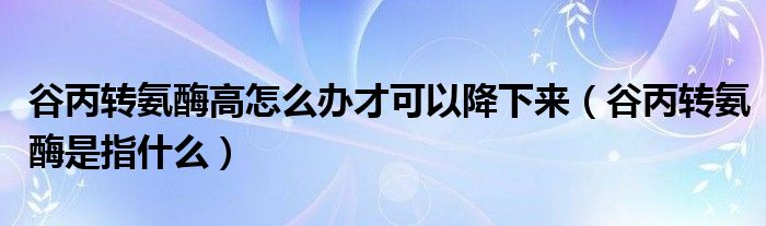 大家好,乐天来为大家解答以下的问题,谷丙转氨酶高怎么办才可以降下来,谷丙转氨酶是指什么很多人还不知道,现在让我们一起来看看吧!
