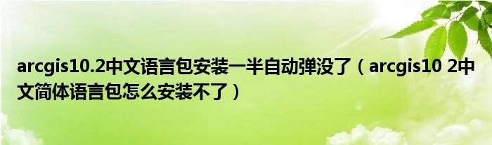 关于arcgis10.2中文语言包安装一半自动弹没了,arcgis10 2中文简体语言包怎么安装不了这个很多人还不知道,今天菲菲来为大家解答以上的问题,现在让我们一起来看看吧!