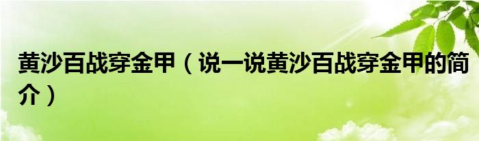 夏弥来为大家解答以下的问题,黄沙百战穿金甲,说一说黄沙百战穿金甲的简介,现在让我们一起来看看吧!
