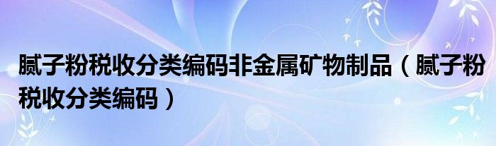 关于腻子粉税收分类编码非金属矿物制品,腻子粉税收分类编码这个很多人还不知道,今天菲菲来为大家解答以上的问题,现在让我们一起来看看吧!