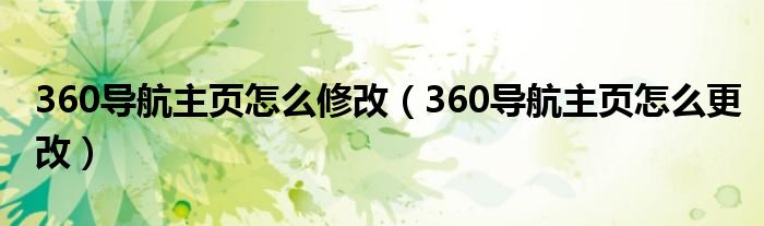 360导航主页怎么修改(360导航主页怎么更改)