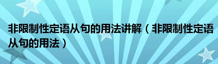 非限制性定语从句的用法讲解(非限制性定语从句的用法)