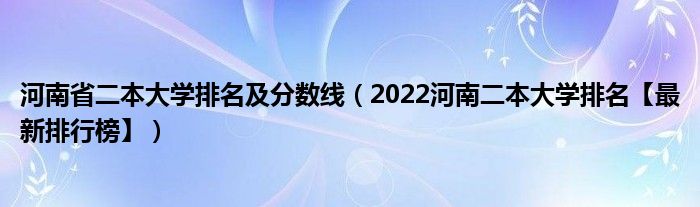 河南省二本大学排名及分数线(2022河南二本大学排名【最新排行榜】)