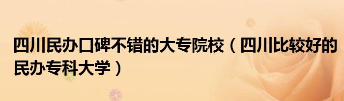 四川民办口碑不错的大专院校(四川比较好的民办专科大学)