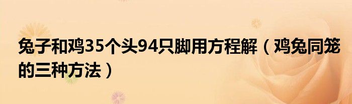 大家好,乐儿来为大家解答以下问题,兔子和鸡35个头94只脚用方程解,鸡兔同笼的三种方法很多人还不知道,现在让我们一起来看看吧!