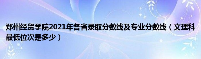 大家好,乐儿来为大家解答以下问题,郑州经贸学院2021年各省录取分数线及专业分数线,文理科最低位次是多少很多人还不知道,现在让我们一起来看看吧!