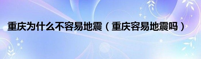 大家好,小晋来为大家解答以下问题,关于重庆为什么不容易地震,重庆容易地震吗很多人还不知道,今天让我们一起来看看吧!