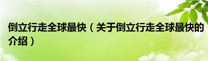 大家好,小夏来为大家解答以上的问题。倒立行走全球最快,关于倒立行走全球最快的介绍很多人还不知道,现在让我们一起来看看吧!