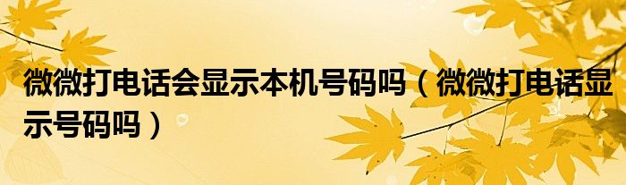 大家好,小晋来为大家解答以下问题,关于微微打电话会显示本机号码吗,微微打电话显示号码吗很多人还不知道,今天让我们一起来看看吧!