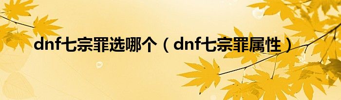大家好,我是小科,我来为大家解答以上问题。dnf七宗罪选哪个,dnf七宗罪属性很多人还不知道,现在让我们一起来看看吧!