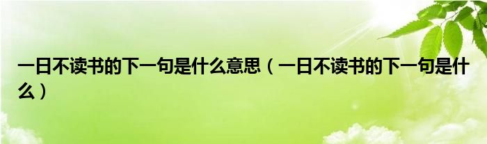 大家好,小夏来为大家讲解下。一日不读书的下一句是什么意思,一日不读书的下一句是什么很多人还不知道,现在让我们一起来看看吧!
