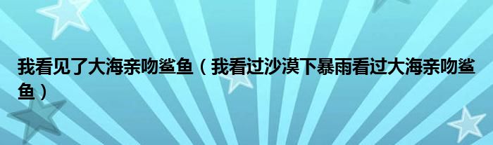 大家好,小联来为大家解答以上的问题。我看见了大海亲吻鲨鱼,我看过沙漠下暴雨看过大海亲吻鲨鱼这个很多人还不知道,现在让我们一起来看看吧!