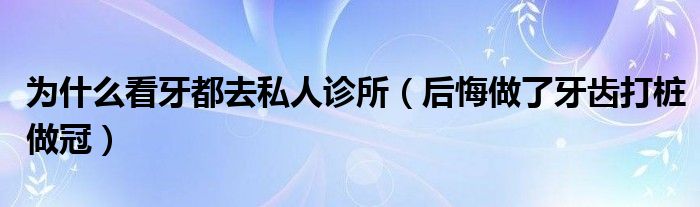 大家好,我是小科,我来为大家解答以上问题。为什么看牙都去私人诊所,后悔做了牙齿打桩做冠很多人还不知道,现在让我们一起来看看吧!