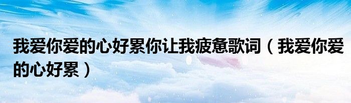 大家好,我是小科,我来为大家解答以上问题。我爱你爱的心好累你让我疲惫歌词,我爱你爱的心好累很多人还不知道,现在让我们一起来看看吧!