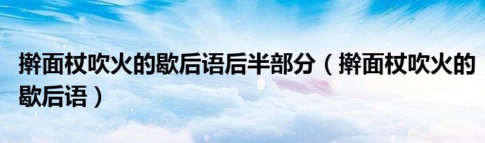大家好,小华来为大家解答以上的问题。擀面杖吹火的歇后语后半部分,擀面杖吹火的歇后语这个很多人还不知道,现在让我们一起来看看吧!