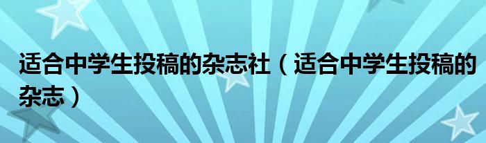 适合中学生投稿的杂志社(适合中学生投稿的杂志)