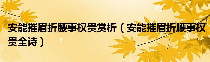 31、安能摧眉折腰事权贵,使我不得开心颜!参考资料梦游天姥吟留别相关古诗文.古诗文网[引用时间2018-1-17]。