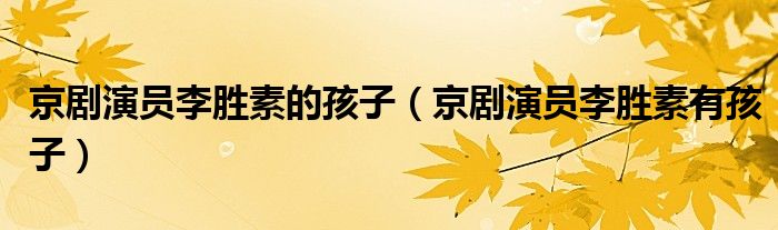京剧演员李胜素的孩子(京剧演员李胜素有孩子)