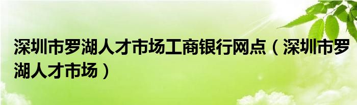 深圳市罗湖人才市场工商银行网点(深圳市罗湖人才市场)