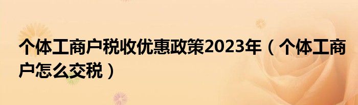 个体工商户税收优惠政策2023年(个体工商户怎么交税)