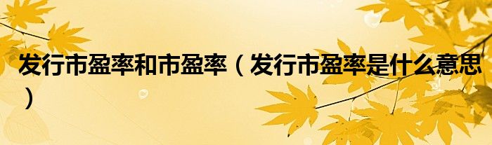 发行市盈率和市盈率(发行市盈率是什么意思)