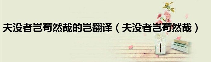 大家好,小晋来为大家解答以下问题,关于夫没者岂苟然哉的岂翻译,夫没者岂苟然哉很多人还不知道,今天让我们一起来看看吧!