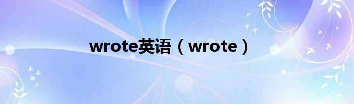 大家好,我是小科,我来为大家解答以上问题。wrote英语,wrote很多人还不知道,现在让我们一起来看看吧!