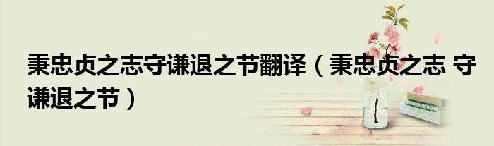 大家好,小晋来为大家解答以下问题,关于秉忠贞之志守谦退之节翻译,秉忠贞之志 守谦退之节很多人还不知道,今天让我们一起来看看吧!