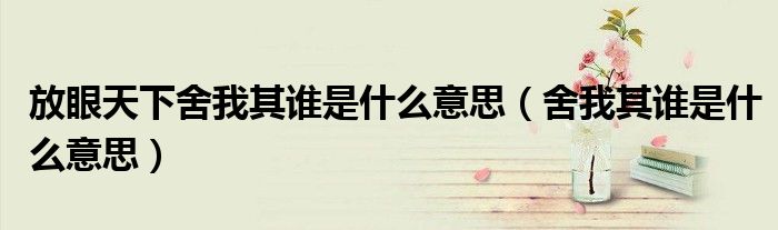 大家好,小晋来为大家解答以下问题,关于放眼天下舍我其谁是什么意思,舍我其谁是什么意思很多人还不知道,今天让我们一起来看看吧!