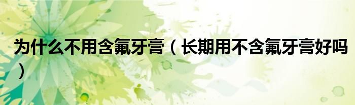 大家好,小晋来为大家解答以下问题,关于为什么不用含氟牙膏,长期用不含氟牙膏好吗很多人还不知道,今天让我们一起来看看吧!