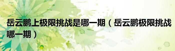 大家好,小晋来为大家解答以下问题,关于岳云鹏上极限挑战是哪一期,岳云鹏极限挑战哪一期很多人还不知道,今天让我们一起来看看吧!