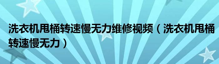 大家好,小晋来为大家解答以下问题,关于洗衣机甩桶转速慢无力维修视频,洗衣机甩桶转速慢无力很多人还不知道,今天让我们一起来看看吧!
