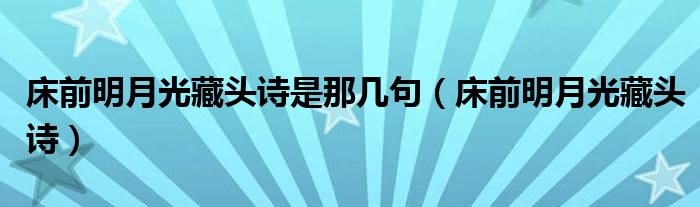 大家好,小晋来为大家解答以下问题,关于床前明月光藏头诗是那几句,床前明月光藏头诗很多人还不知道,今天让我们一起来看看吧!
