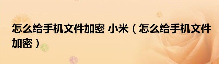大家好,来宝来为大家解答以下问题,怎么给手机文件加密 小米,怎么给手机文件加密很多人还不知道,今天让我们一起来看看吧!