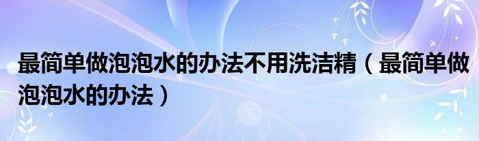 大家好,小晋来为大家解答以下问题,关于最简单做泡泡水的办法不用洗洁精,最简单做泡泡水的办法很多人还不知道,今天让我们一起来看看吧!
