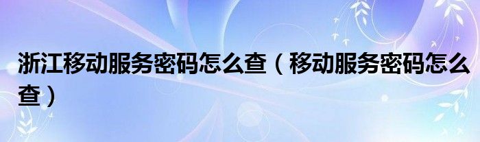 大家好,小晋来为大家解答以下问题,关于浙江移动服务密码怎么查,移动服务密码怎么查很多人还不知道,今天让我们一起来看看吧!