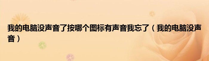 大家好,来宝来为大家解答以下问题,我的电脑没声音了按哪个图标有声音我忘了,我的电脑没声音很多人还不知道,今天让我们一起来看看吧!