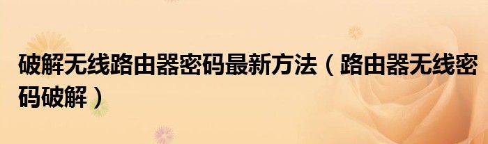 一种破解无线路由器密码的方法