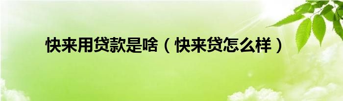 大家好,小晋来为大家解答以下问题,关于快来用贷款是啥,快来贷怎么样很多人还不知道,今天让我们一起来看看吧!