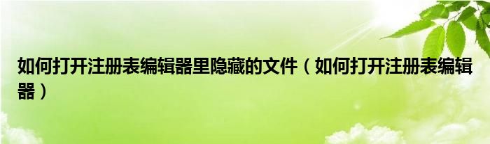 大家好,来宝来为大家解答以下问题,如何打开注册表编辑器里隐藏的文件,如何打开注册表编辑器很多人还不知道,今天让我们一起来看看吧!