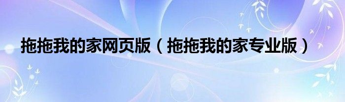 大家好,来宝来为大家解答以下问题,拖拖我的家网页版,拖拖我的家专业版很多人还不知道,今天让我们一起来看看吧!