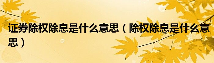 关于证券除权除息是什么意思,除权除息是什么意思这个很多人还不知道,今天菲菲来为大家解答以上的问题,现在让我们一起来看看吧!