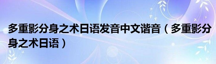 关于多重影分身之术日语发音中文谐音,多重影分身之术日语这个很多人还不知道,今天菲菲来为大家解答以上的问题,现在让我们一起来看看吧!