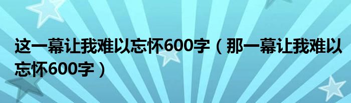 关于这一幕让我难以忘怀600字,那一幕让我难以忘怀600字这个很多人还不知道,今天菲菲来为大家解答以上的问题,现在让我们一起来看看吧!