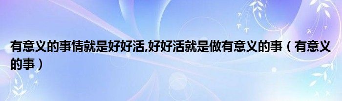 关于有意义的事情就是好好活,好好活就是做有意义的事,有意义的事这个很多人还不知道,今天菲菲来为大家解答以上的问题,现在让我们一起来看看吧!